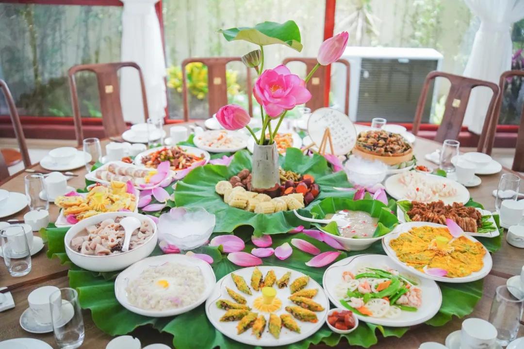 荷叶春卷、荷花酥、香酥藕盒、银耳莲子粥……可以说荷花的每一个部位都是珍贵的食材,每一道菜都融入了荷的元素,在保留了原有配料味道的基础上,又增添了荷叶淡淡的清香,外焦里嫩、入口即化,引得食客们赞不绝口。