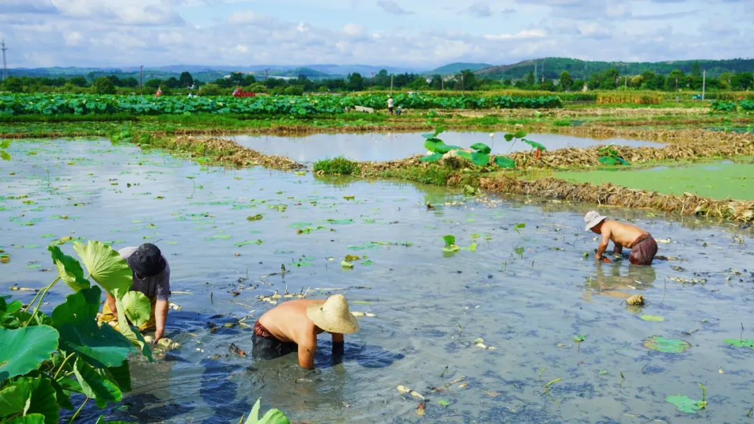 盛夏时节,建水县西庄镇的5000余亩莲藕进入成熟采收期,丰收在望。连日来,藕农们晨出晚归,忙着采挖鲜藕,供应市场。