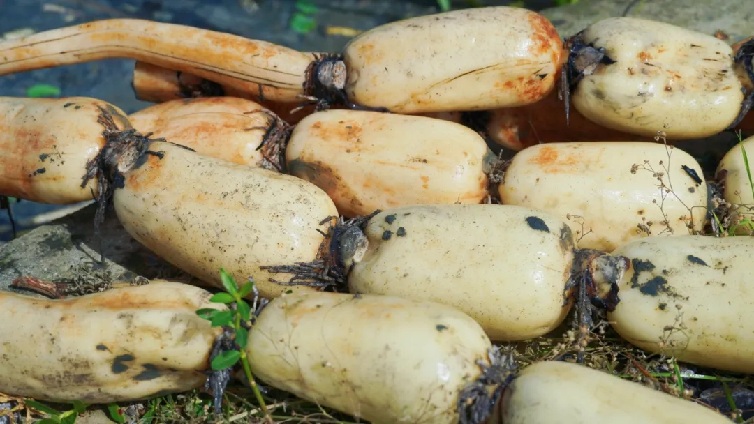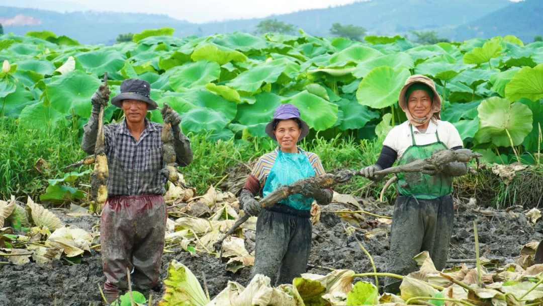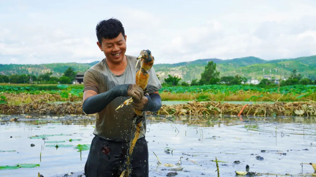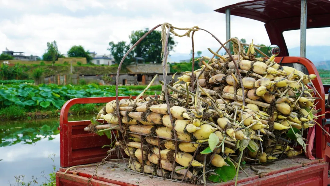 这些莲藕长而饱满,经过初步清洗看上去就已经十分白嫩。每到莲藕采收时节,就会有收购商前来村里收购莲藕,再销往昆明、曲靖、北京、上海等地。莲藕营养价值高,味道鲜美,既可食补也可入药,颇受市场青睐。