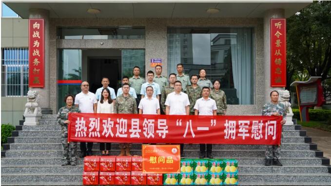 为进一步巩固军政、军民关系,增进军民鱼水情深,在2024年“八一”建军节即将到来之际,县委副书记、县长钟红荘,县委副书记吕毅分别带队走访慰问驻建部队官兵,向部队官兵致以诚挚的问候和节日的祝福。