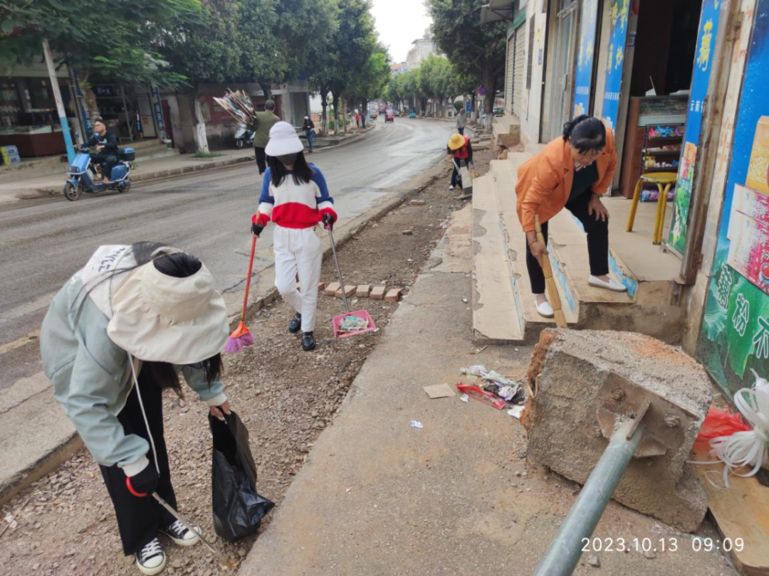 志愿服务队拿着扫把、铁锹、锄头、火钳等工具,到各自包保的责任片区,齐心合力对集镇干道两旁杂草、卫生死角等进行全面清理,同时劝导商户认真落实门前“三包”责任制,养成文明健康的卫生习惯,营造爱护环境、人人参与、共同维护公共环境卫生的良好氛围。
