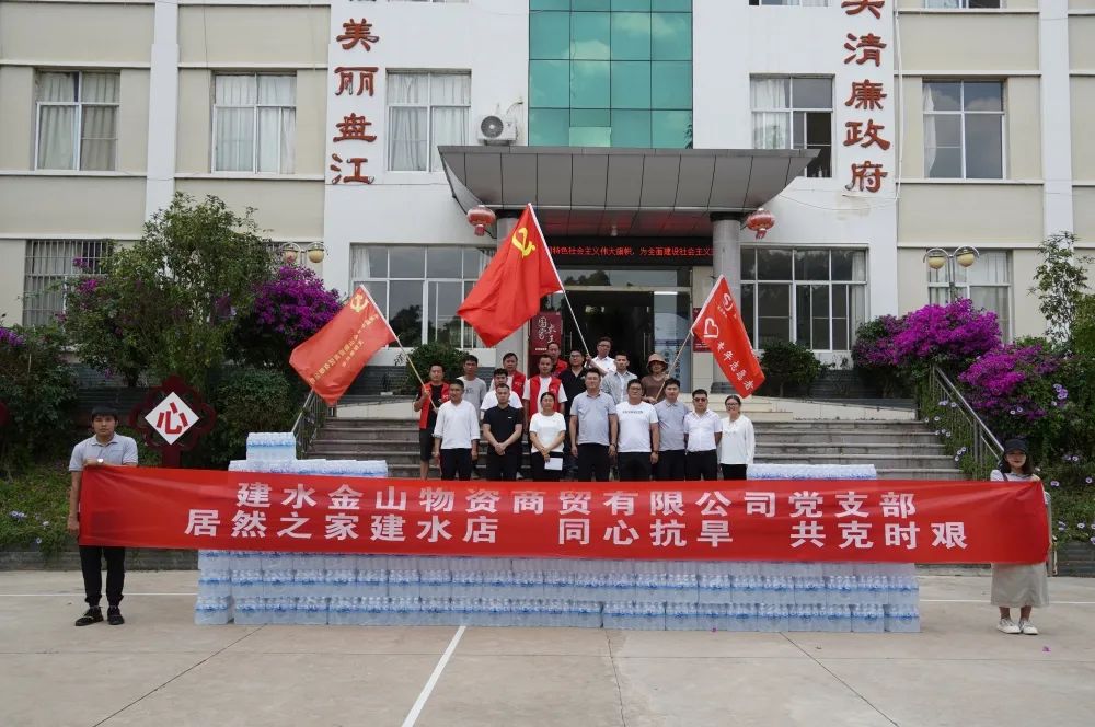 4月27日,建水县工商联、县“两新”组织携手金山物资商贸有限公司党支部到盘江乡捐赠了24000瓶矿泉水,为群众送去一丝清凉。
