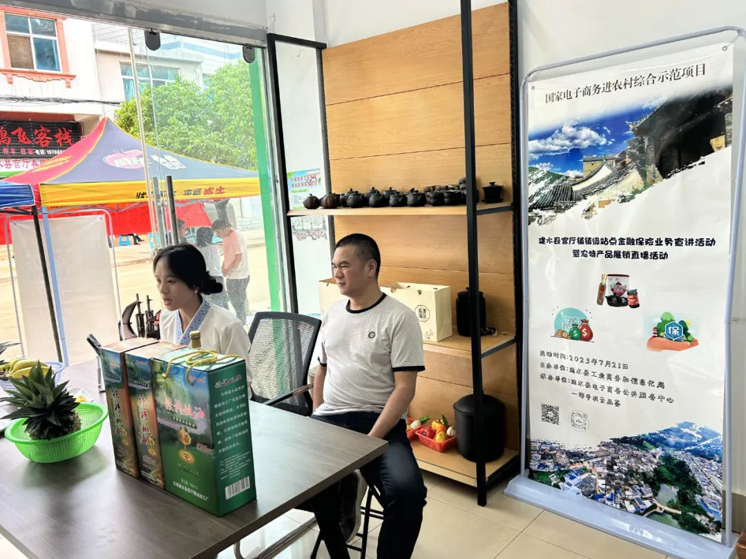 为打造建水县电子商务进农村综合示范项目乡镇站点典型示范样板,助力官厅镇农村电商发展,促进建水县官厅镇农特产品产销对接,为优质农产品挖掘更广阔的市场,2023年7月21日,建水县电子商务公共服务中心到官厅镇电子商务(物流配送)公共服务站点开展金融保险业务宣讲暨农特产品展销直播活动。
