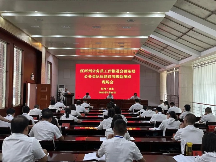 7月15日,红河州公务员工作推进会暨基层公务员队伍建设省级监测点现场会在建水召开,州委组织部副部长、州委党代会常任制工作办公室主任卢志旺出席会议,县委常委、县委组织部部长许洁琼参加会议。