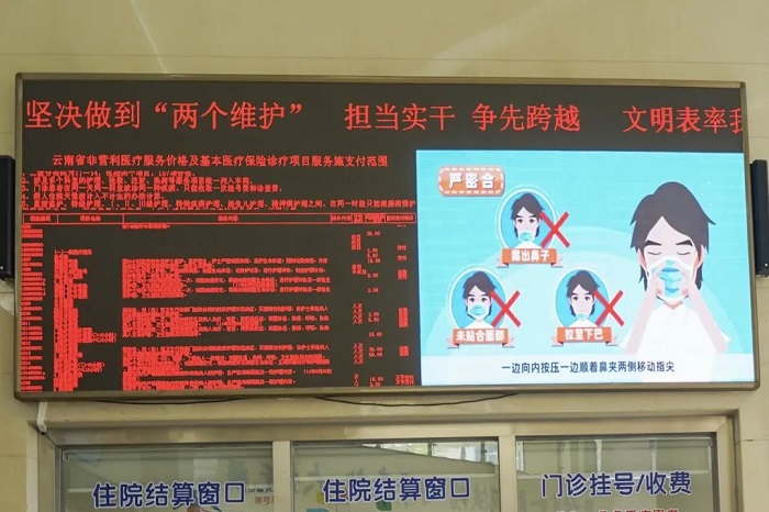 医院还充分利用门诊大厅电子屏,循环播放疫情防控公益广告,供全院干部职工及来院就诊的患者观看,让患者增强对新冠肺炎疫情防范意识。