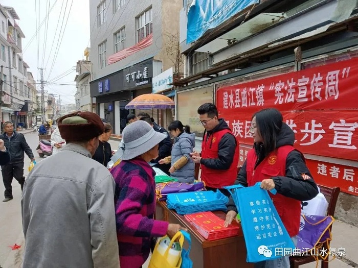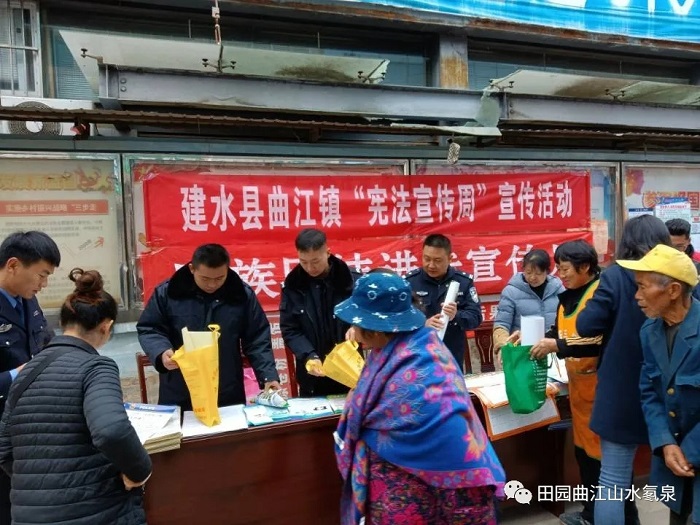 为进一步宣传宪法精神,增强广大人民群众的法治观念和法律意识,推动普法工作不断发展,在全镇营造良好学法、知法、守法、用法的良好法治氛围。同时,充分发挥法治宣传教育在村级换届选举中的重要作用,确保换届选举工作依法有序进行。12月9日,曲江镇利用赶集日,组织镇民宗办、宣传办、司法所、派出所等部门联合开展宣传活动。