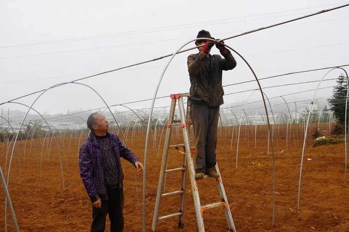 现在正值寒冬腊月,对于农民来说本该是农闲的季节,但在坡头村委会流转的90余亩地里,记者却看到了新建遮阳棚的繁忙景象。来自曲靖的重楼种植大户顾发正,正忙着和工人们一起搭建大棚,并不时地给予工人们耐心指导,希望大棚能早日建成,把重楼种进去。顾发正告诉记者,几年前他就有来这里发展重楼种植的念头,但由于水电路都不通,所以一直不敢来。今年,乡党委政府积极筹措资金,兴建管网基础设施,为农业发展提供了良好条件。