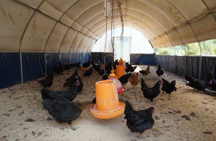 海川农牧科技有限公司是2018年香木桥村引进的一家企业。公司入驻以来,在村委会的支持下,积极推广贡菜种植,建立了渔业和养鸡基地,在林下跑鸡散养基地,成群的蛋鸡有的在鸡棚吃食,有的悠闲的在棚外散步。公司采取发放鸡苗给农户,再回收成鸡的方式,有效增加农户收入。目前,该企业投资的养猪厂也正在建设中。