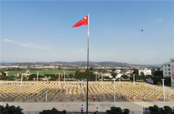 师生们大声朗诵:爱我们的家园,爱我们的祖国,爱我们的同胞,我们愿意为了我们的共同的栖息地而共同战斗!少年智则国智,少年富则国富,少年强则国强,少年独立则国独立,少年自由则国自由,少年进步则国进步。今时今日,此时此刻,作为新一代的小学生,他们表示一定努力学习,拿出肩扛重任,不断开拓进取,永不停息创新步伐的勇气,将青春注于时代的脉搏,将无畏注于中国的血液,将勤劳注于民族精髓。同胞们会见证他们的成长历程,社会会见证他们的奔跑轨迹,祖国会见证他们的超越自我。请相信,在历史的洪流中我们一定会坚强,在社会的碰撞中一定会坚持自己的方向,在国际的舞台上一定会不卑不亢,展现泱泱中华最美的风采!