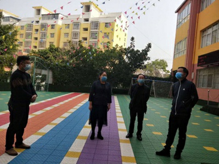 3月11日上午,建水县人民政府副县长沈也程到蓝天幼儿园和蓝天第二幼儿园调研督导开学前疫情防控和各项准备工作。县教体局杨伟明、临安镇中心学校普有明陪同。
