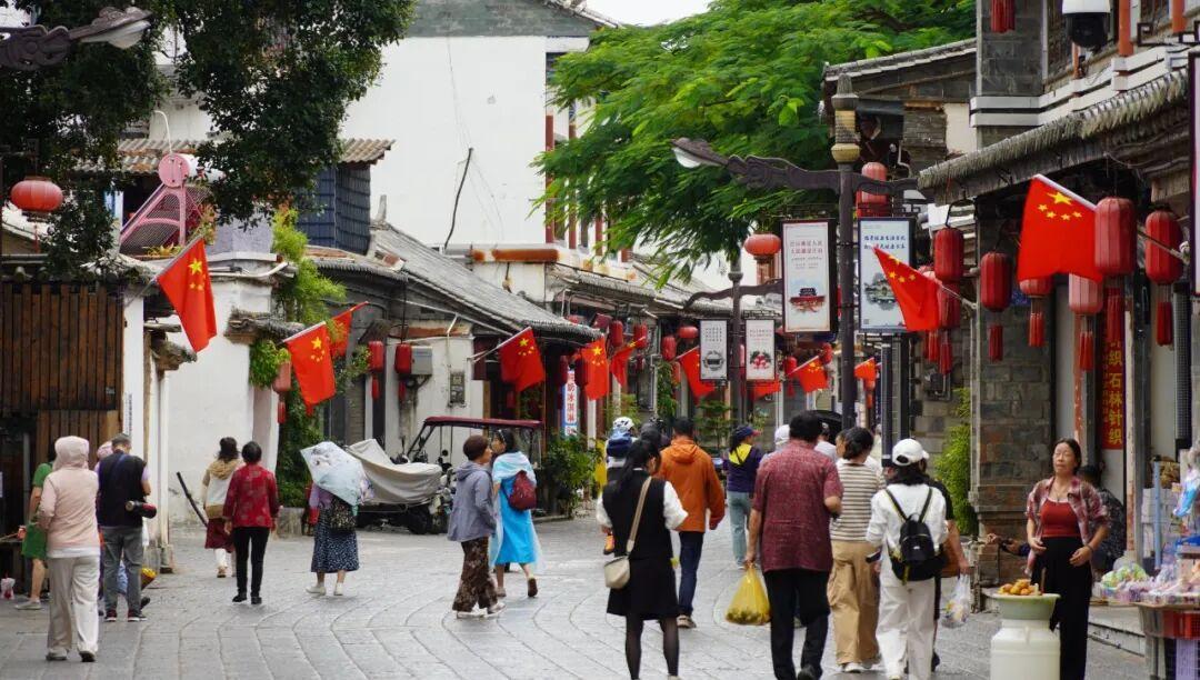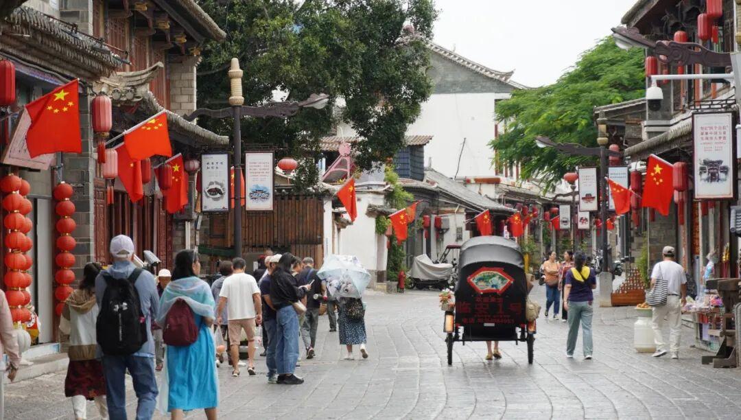 沈阳游客于兰秋激动地说道,漫步建水古城街道,两旁飘扬的五星国旗让我瞬间沉浸在浓烈的国庆氛围中。参观城内古迹,悠久的历史令人回想;对比当下的美好生活,作为一名中国人,我心中充满了骄傲、自豪与幸福。我相信,我们的子孙后代必将拥有更加美好的未来。