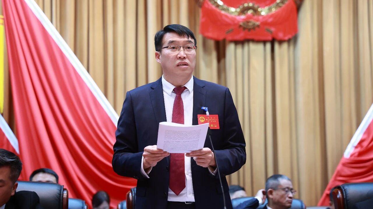 杨建伟在闭幕会上讲话。他说,这次会议,各位代表依法行使职权、积极建言献策,展现了高度的政治责任感和历史使命感,是一次高举旗帜、民主团结、求真务实、凝心聚力的大会。