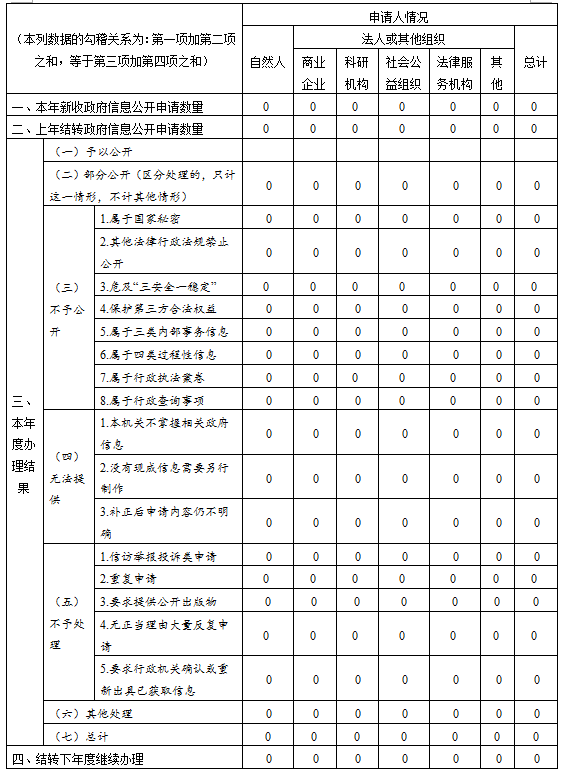 三、收到和处理政府信息公开申请情况