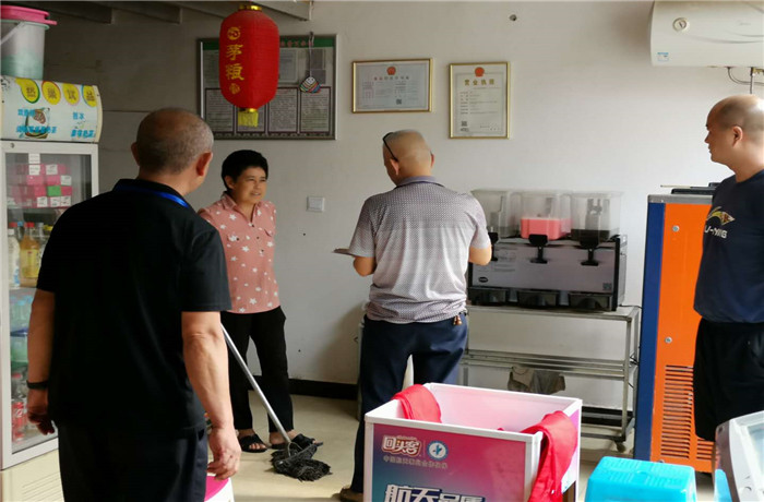 市场监督管理所领导查看新街小学食堂“6T”实务管理工作推进情况,对食品采购、存放、加工、留样等情况进行细致查看和指导。接着对校园及周边各种食品经营店逐一进行排查,对经营不规范的,限期整改。